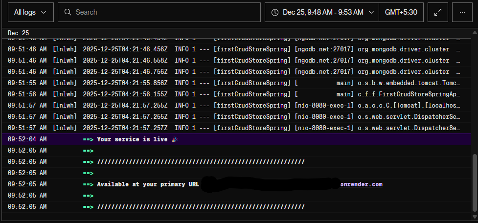 My Stack: Spring Boot + MongoDB Atlas + Render Docker