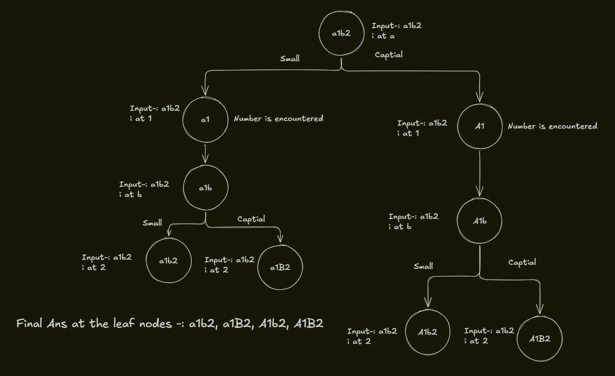 'a'β branch into'a'and'A' '1'β no branching (digit)'b'β again branching'2'β no branching